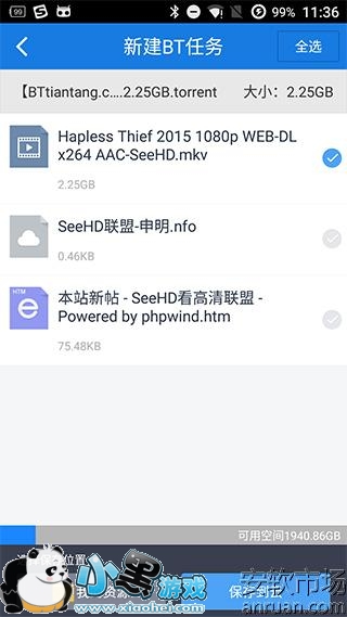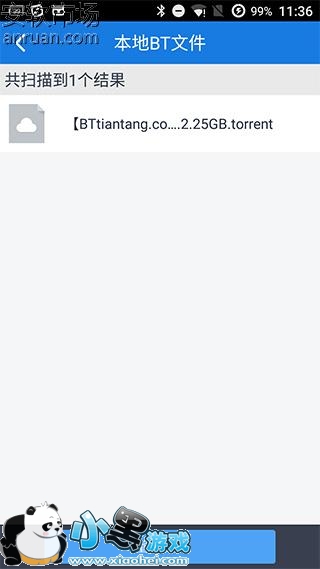 3、然后直接找到手机里面存放种子的位置或者自动扫描本地种子文件(速度相当快):