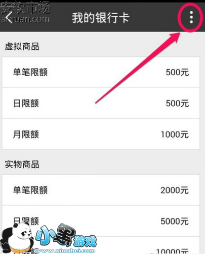 4、进入以后,在我的银行卡界面的右上角有一个三个点的按钮,点击该按钮进入,如下图。