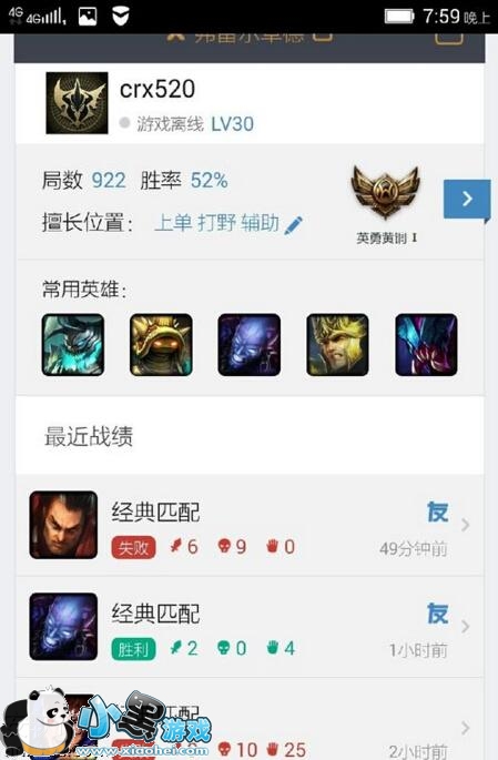 5、玩家个人的主页面,有这个玩家的基本信息等内容,可以看到他所有的对局数据,包括人头,经济和出装,还能和别的玩家进行对比等功能,总结失败以及成功的原因。