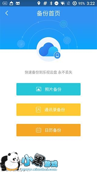 乐视云盘手机通讯录备份教程 1、首先,下载小黑市场新版的乐视云盘,打开登录乐视云以后,点击最后一个【备份】: