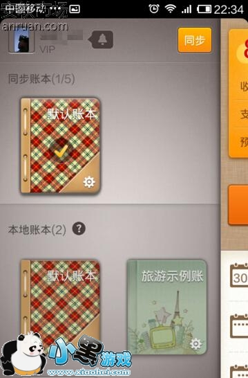 4、点击主界面左下角的“三”这个功能选项,点击就可以进入账本页面,在账本页面中你可以同步这个账号上的所有账本,也可以查看手机上本地保存的账本。