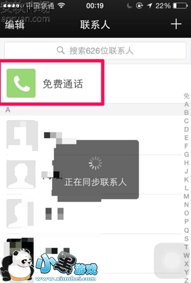 5、导入联系人成功以后,就可以开始使用微信电话本进行免费通话了,然后在点击联系人上方的免费电话,完成绑定即可。