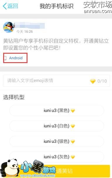3、我们能够选择的是iuniu3、android、不显示,选择以后暂时的效果会显示在上方,完成以后我们可以通过发个说说查看: