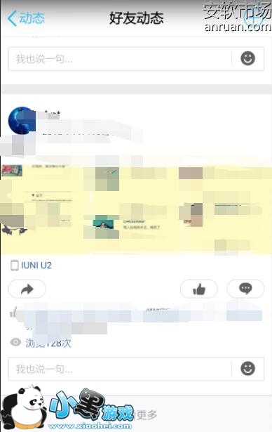 手机QQ怎么设置QQ空间动态手机型号 1、首先,下载小黑市场新版的手机QQ,打开以后登录自己的QQ,进入手机QQ动态界面,找到一个用手机发动态的好友,如图: