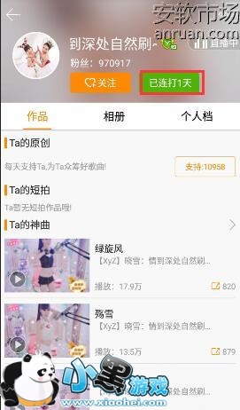 3、进入到TA的个人主页,就可以看到打卡,打卡以后就能看到自己的打卡的天数: