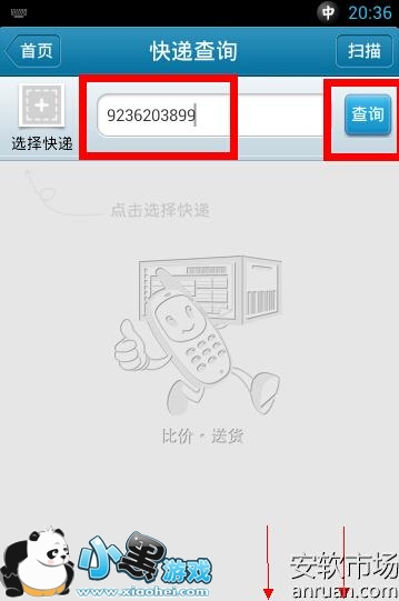8、当然在查询页面输入你的快递单号或者直接扫面快递单上的条形码也行。