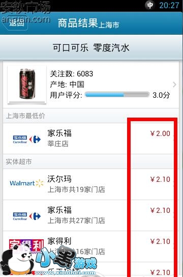 4、当你选中一款商品,点击进入以后该商品的详情页,你会看到你周围大超市该商品的价格。