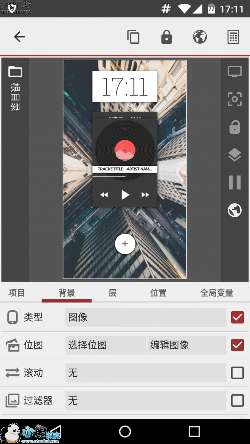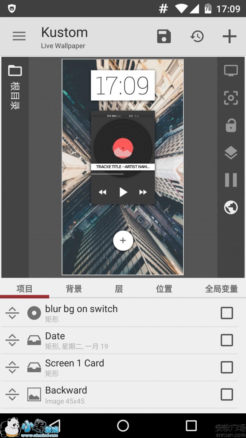 3、KLWP还有一大设计亮点就是操作栏,针对不同的项目类型,操作栏有不同的选项卡,都会展示不同的操作栏给DIY留下很多不同的空间,之后可以批量处理诸如复制和剪切、函数链接、全局变量链接等操作,大大简化制作步骤: