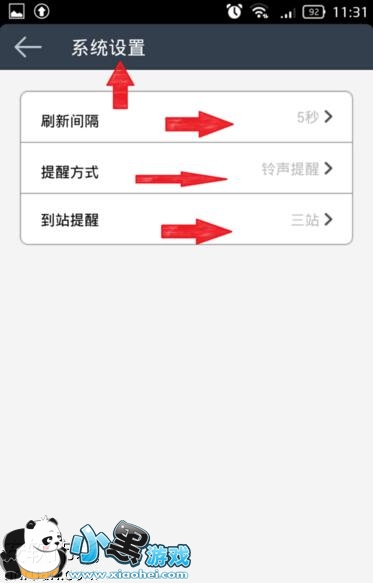 6、点击进入以后,就可以来到系统设置这个界面了,在这个界面中我们可以设置它的刷新间隔,提醒方式,到站提醒。