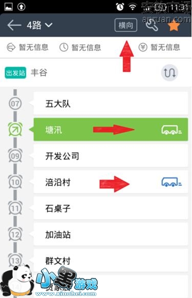 3、当选择好某条公交线路以后,你就会看见这条公交路线一个具体的运行情况,公交车有哪些站,现在在哪个站等等一系列详细信息。