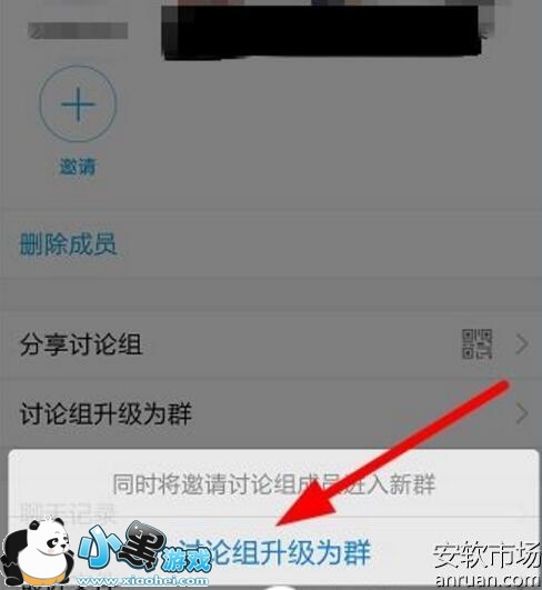 2、进入以后,就可以看到将【讨论组升级为群】: