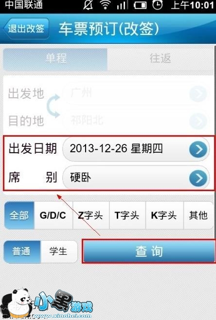 5、车次是不可以改的,只有更改发车时间和车票类型。如下图所示:查询一下。
