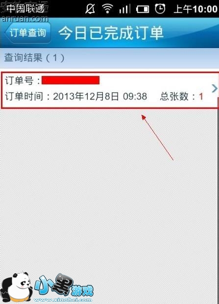 3、通过点击今日查询可以查到自己购买到的火票的订单,点击该订单。