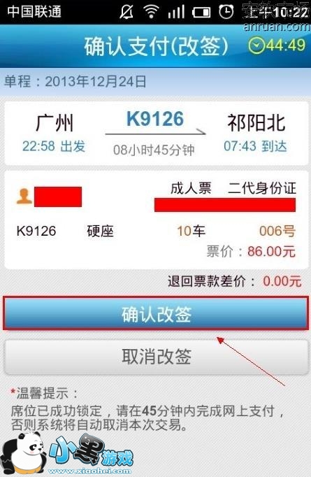 8、确认改签日期,车票类型。如果硬坐换硬卧需要加钱,相反会退钱给您的。