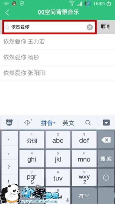 5、在搜索框中输入我们要添加的歌曲名,然后在下方会显示歌曲,一般情况下会有几个不同的结果让你选择,这时你只需要选择自己喜欢的歌手即可。