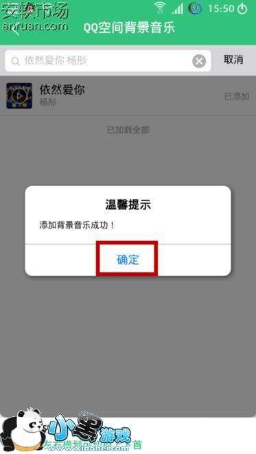 7、添加成功以后,会弹出一个提示框提醒你添加背景音乐成功的消息提示,这时候你返回到自己的QQ空间就能听到刚才你设置的歌曲了。