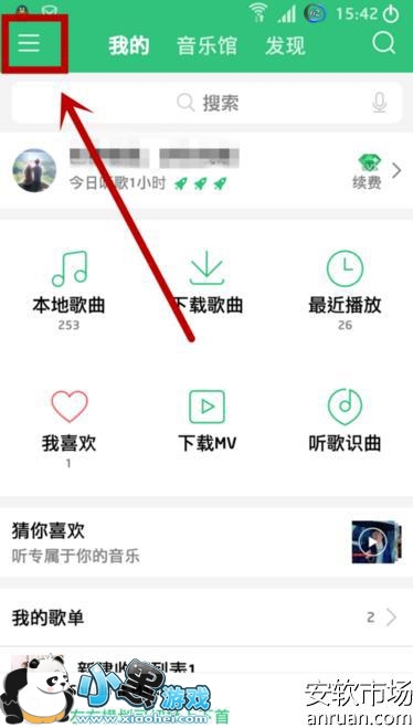1、打开手机QQ音乐客户端,进入手机QQ音乐主界面后点击主界面左侧右上方的“三”这个功能选项, 点击进入,如下图。