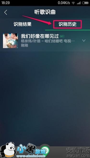 5、每当手机QQ音乐识别出来一首歌曲以后,大家还可以在识别历史中看到自己识别到的所有歌曲。