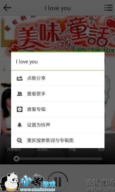 2、进入到该歌曲的播放界面以后,可以看到改播放界面下方有几个功能我们可以选择, 点击其中“更多”这个功能进入,如下图。