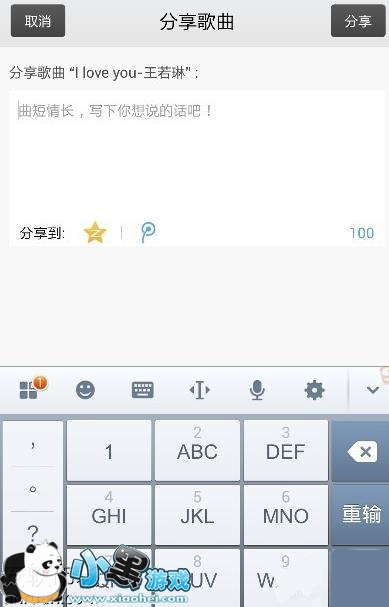 5、这里以分享到QQ空间、腾讯微博为例,点击以后,会有一个功能窗口让你选择分享这首歌曲的理由,可写可不写,然后点击分享,这时你就可以去到QQ空间中查看刚才你分享的歌曲了。