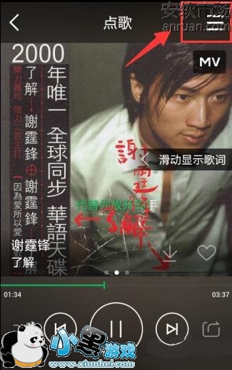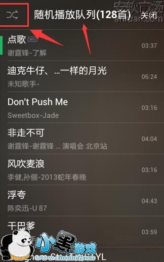 5、进入到歌曲播放列表界面以后,在界面最上面的左侧有一个歌曲播放的按钮,点击它就可以更改当前的播放模式,例如这里点击一次变成了随便播放,如下图。