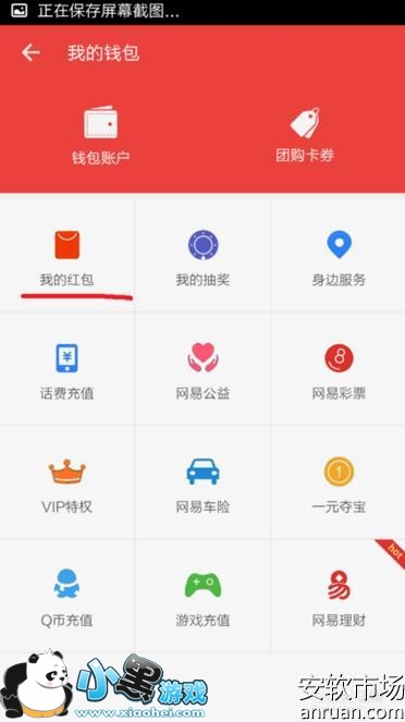 5、进入到“我的钱包”这个功能界面以后,其中就有一项功能是“我的红包”,点击该功能进入,如下图。