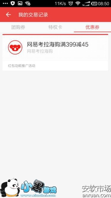 7、如果你领到的是卡券或者是团购信息的话,那么就直接点击我的钱包界面上的“团购卡券”这个功能选项,进入以后,就能看到自己领到的卡券以及团购券了。