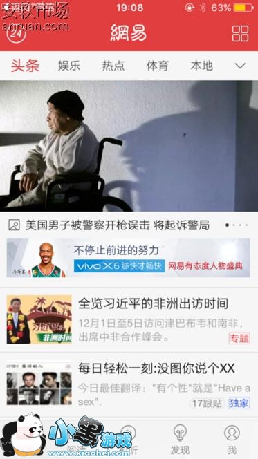 1、打开网易新闻客户端,进入新闻主界面以后,可以看到当天发生的一些实时新闻,然后在主界面右下方的位置找“我”这个功能选项, 找到以后点击该功能然后登录自己的网易帐号,如下图。