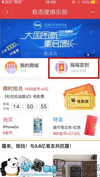 3、点击该功能以后会出现一个叫“有态度俱乐部”的界面,在这个界面中有一个“摇摇签到”的功能,点击该功能进入,如下图。