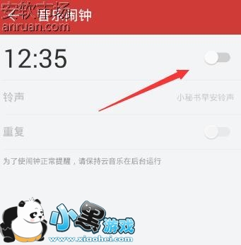 3、将音乐闹钟的开关打开