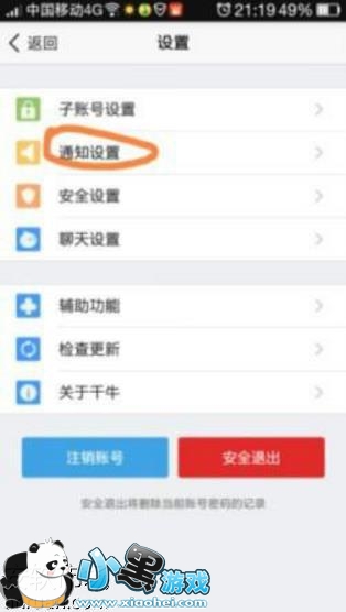 3、在设置界面中,有一个功能叫“通知设置”,点击此功能进入,如下图。