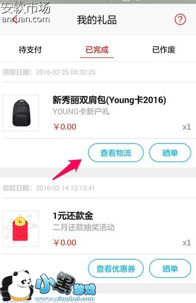6、点击招商银行掌上生活的实物礼品下方还可以点击查看物流,查看自己礼品的物流信息,使用起来很方便。