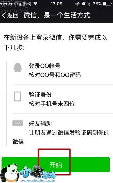 6、接下来,您会看到需要完成的步骤,包括登陆qq和密码,验证身份,好友辅助等等,阅读之后选择开始进入。