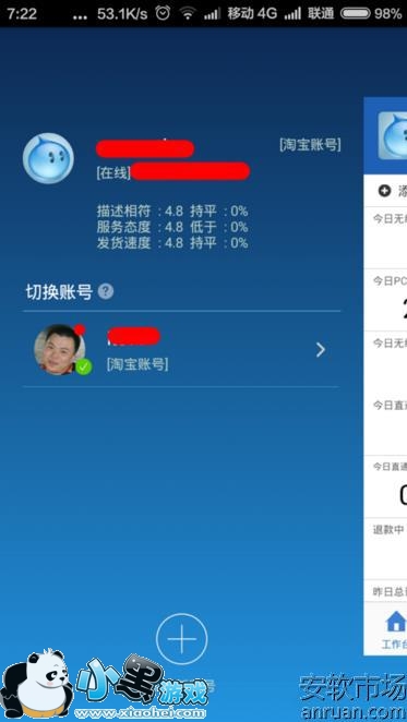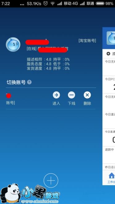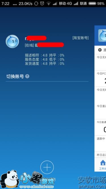 2、点击左侧头像以后,会出现一个您店铺的状态信息,在其界面最下方还有一个添加帐号的功能,点击该功能进入,如下图。