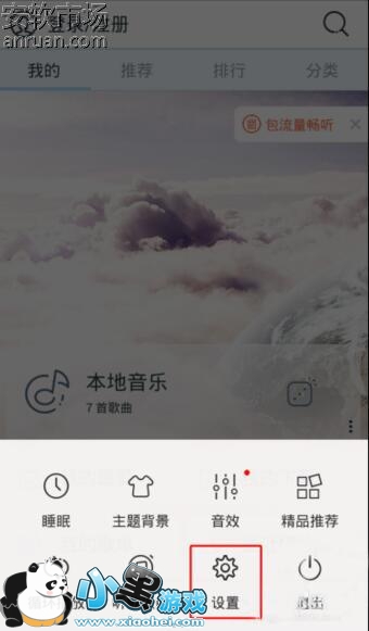 天天动听下载的歌曲在什么位置 1、首先,下载小黑市场新版的天天动听,直接点击菜单进入【设置】: