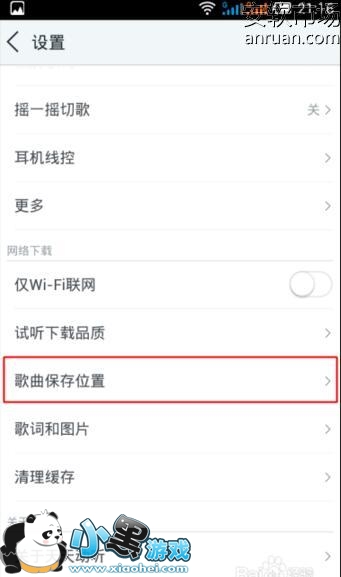 2、在设置页面里面找到【歌曲保存位置】: