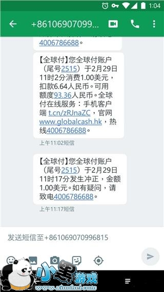 此外,添加信用卡作为付款方式后,Google 会生成一笔 1 美元的冲正交易来进行验证,扣款和退款详情都会发送到我们绑定全球付的手机号上,无需担心。