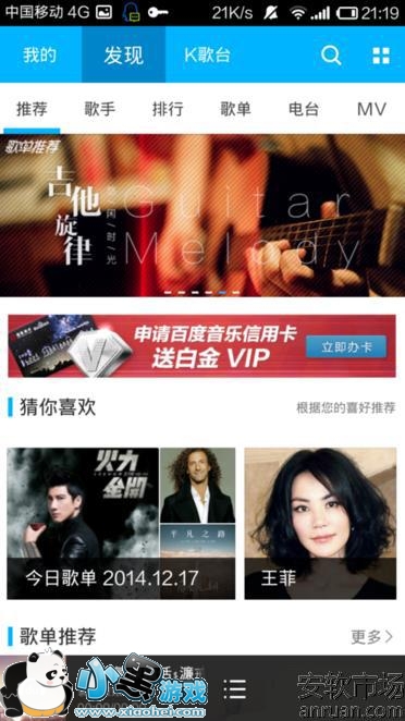 1、打开手机百度音乐客户端,进入到手机百度音乐主界面,进入主界面以后就可以看到百度音乐根据你的喜好推荐的一些歌手和歌曲了。