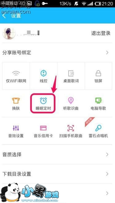 3、点击该按钮以后就能进入到设置界面,在设置界面中有一个功能是睡眠定时,点击这个功能进入,如下图。