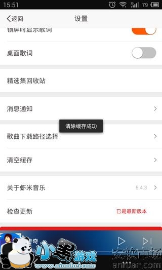 5、当你成功清理掉歌曲的缓存以后,设置界面还会弹出一个消息提示你缓存清理成功,这时候你再去用自己的手机,会发现比之前流畅很多。