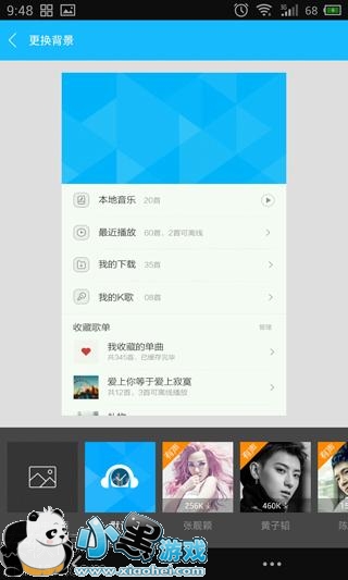 4、选择好那张背景图片以后,在返回到百度音乐主界面后,会发现百度音乐背景图片的皮肤变成了我们刚才选中的那种图,这也就表示我们成功的给百度音乐换了皮肤。