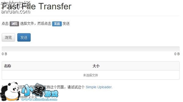 接收文件同理,点击开始后通过浏览器访问网址,在此可直接上传文件。Fast File Transfer 非常人性化地为老版本浏览器提供了简易版本地上传界面。在发送和接收页面下方,我们也可以直观地看到传输进度。