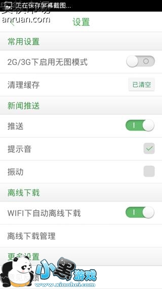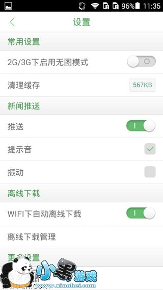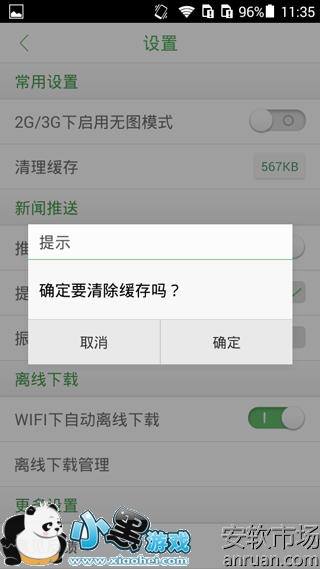 3、进入到360新闻设置界面以后,在常用设置这个功能下面就有一个清理缓存的功能,还可以看到当前生成的新闻缓存占了多少内存,点击清理缓存这个功能,如下图。