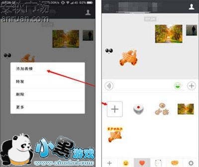 第八步:快速进入我的表情管理的方法,在对话框表情里点击“+”,就出来我的表情管理,同理可以加入本地照片。