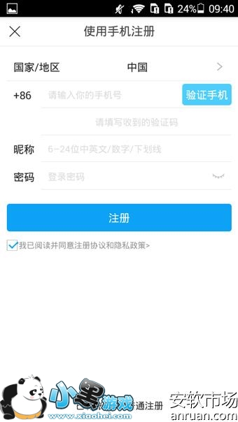 4、进入到帐号注册界面以后,一般需要我们使用手机号进行注册,根据注册步骤来,先输入自己的手机号码,再填写手机的验证码,然后输入自己的要注册帐号的昵称,最好再设置好密码,完成上述步骤以后,就可以点击注册这个按钮了,如下图。