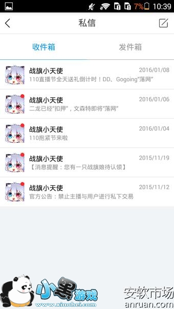 3、进入到私信界面以后,可以看到自己的战旗TV的收件箱与发件箱,因为我们是要发私信,所以需要我们点击私信界面右上方的“编辑”按钮进入到写私信界面。
