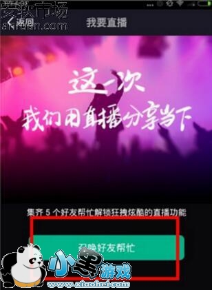3、首次进行直播的用户。需要集齐5个好友帮忙解锁直播功能,你可以直接点击召唤好友帮忙,然后分享给你的朋友,解锁之后,就可以输入标题,点击摄像按钮,进行直播就可以开始了: