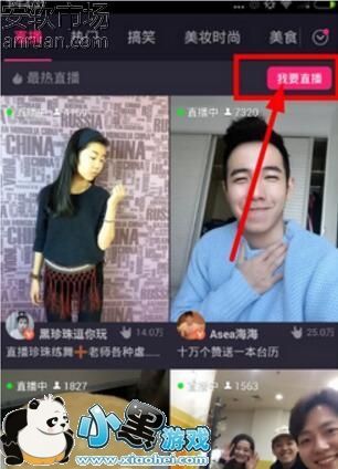 美拍怎么开直播 美拍直播要什么要求 1、首先,下载小黑市场新版的美拍,在首页上方的导航栏中,可以看到第一位的直播按钮,点击进入直播专区: