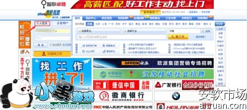 1、打开智联招聘网站,进入到智联招聘主界面,可以在界面左侧看到一个登录的窗口。