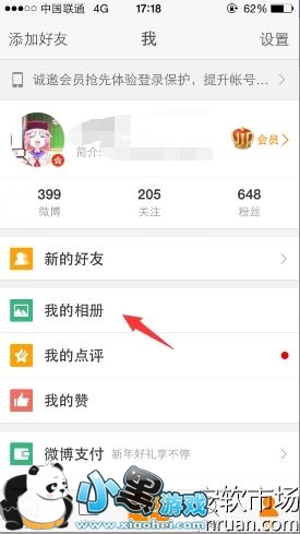 1、首先,进入微博客户端个人中心“我的相册”当中,如图: